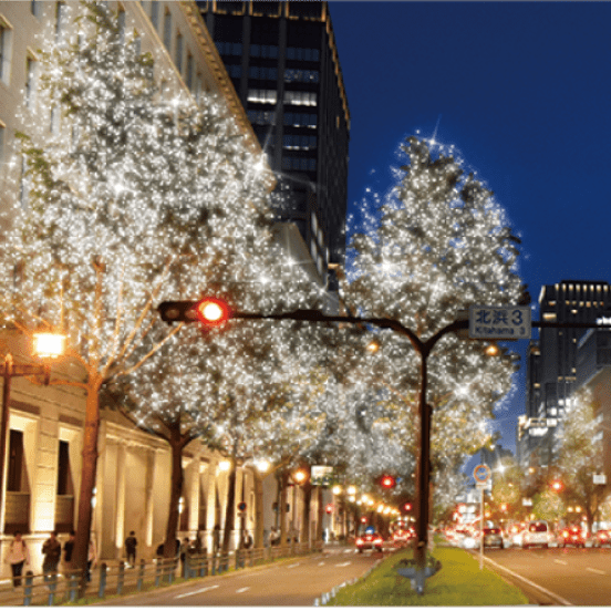 The entire city will be adorned with dazzling lights, offering a light program that lets visitors enjoy Midosuji as they stroll through it.