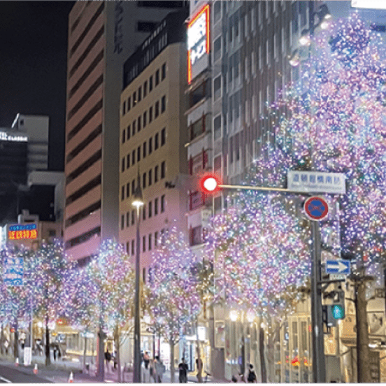 This year, the Minami area shines in a new color with the addition of purple to pastel pink. The bolder palette brings a striking impact, lighting up Minami—a district where young people gather—in an even more vibrant and festive way.