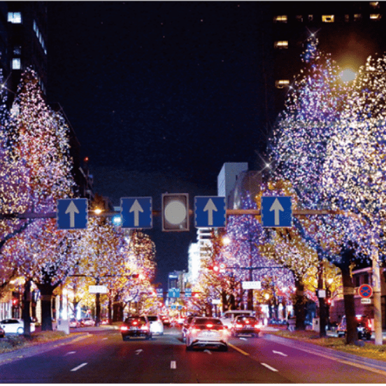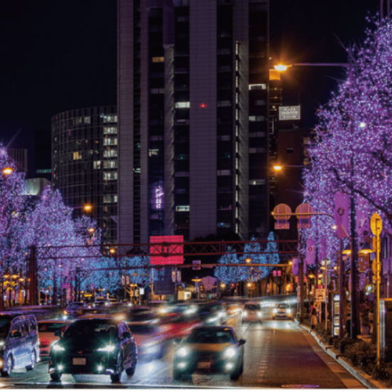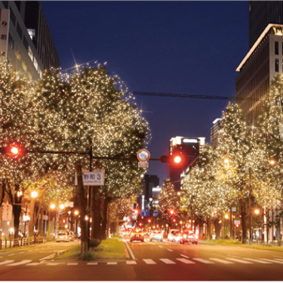 엑스포의 해를 마무리하며미도스지 4km에 걸친 호화로운 빛의 연출로 거리를 화려하게 빛냅니다.
